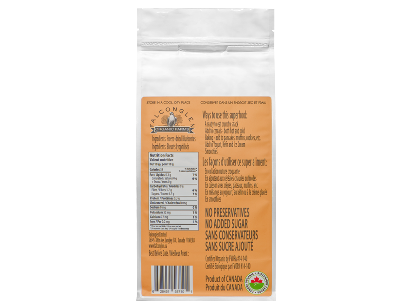 - Ingredients: Canadian Certified Organic Blueberries grown and produced in Langley BC Canada.